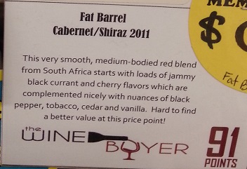 The shelf description from the Bottle King “Wine Buyer” reads: “This very smooth, medium-bodied red blend from South Africa starts with loads of jammy black current and cherry flavors which are complemented nicely with nuances of black pepper, tobacco, cedar and vanilla. Hard to find a better value at this price point!” They gave it 91 points.